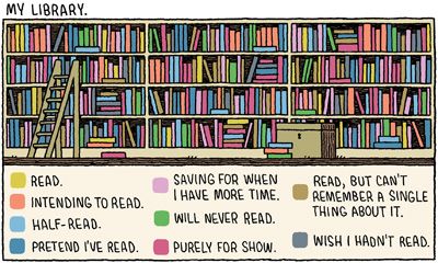 was at a talk by Tom Gauld (illustrator) and saw this thought it summed up the home library experience.