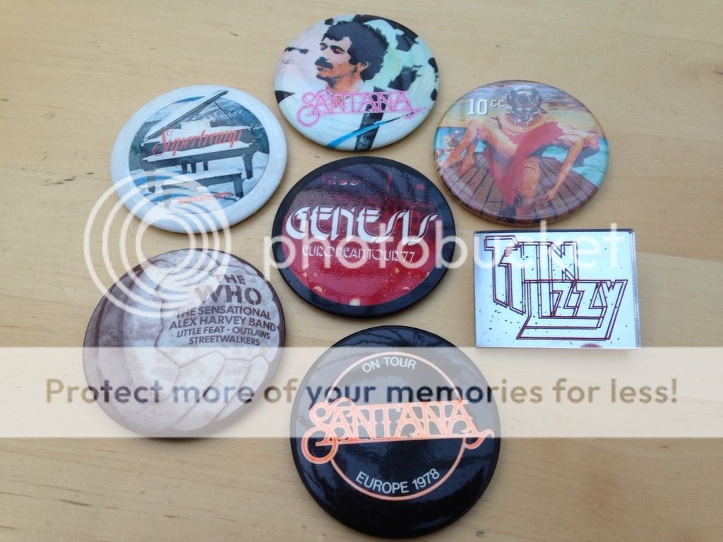 I used to wear masses of badges on my jacket in my youth, but I’ve only kept one, and it isn’t a music badge, but one that says “I’d rather be rich” (which is still true).